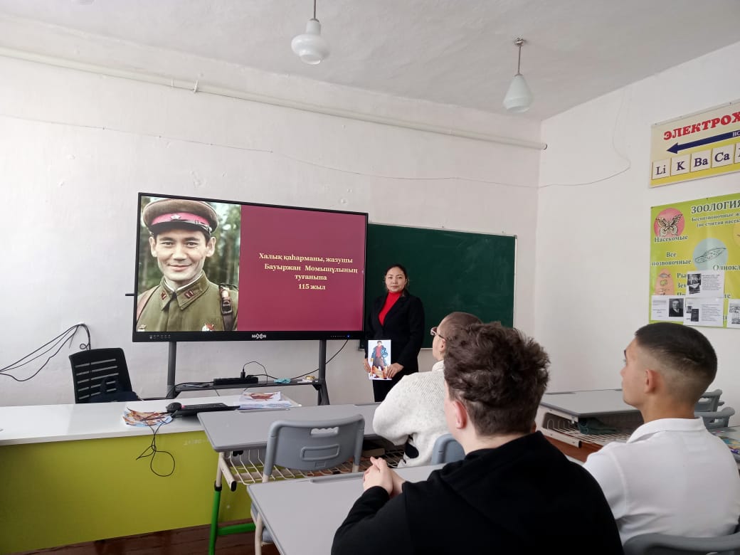 08.12.2025 ж. сынып жетекшілері қазақтың көрнекті әскери қолбасшысы, Кеңес Одағының Батыры Бауыржан Момышұлының 115 жылдығына арналған сынып сағатын өткізді. Сынып сағаты барысында оқушылар аты аңызға айналған қолбасшының өмірбаяны мен подіктеріне сүңгіп, оның Ұлы Отан соғысындағы рөлін және ұлттық сананың қалыптасуына қосқан үлесін зерттеді.