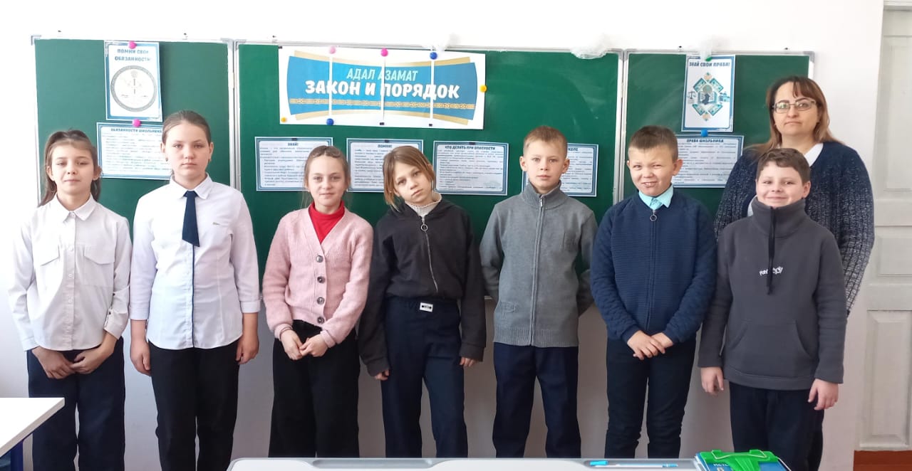 30.01.2026 ж Әлеуметтік.педагог Е. А. Вольф 6-7 сынып оқушыларымен «Заң және тәртіп» тақырыбында әңгіме өткізді.